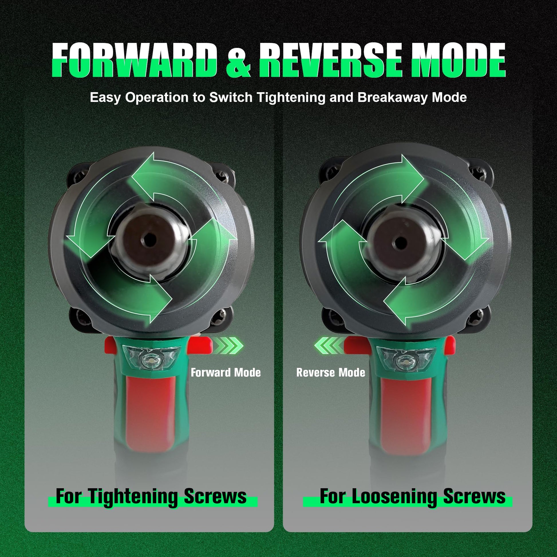 • Impact Wrench and Impact Drill Dual Purpose: Just replace the sleeve and install the drill bit, it becomes an impact drill. Meet your diverse needs. The design of the rubber handle plays a role in anti slip and shock absorption, and it is not tiring to use for a long time. The built-in LED light allows you to work easily in dark spaces